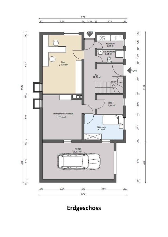Möglichkeit, eine Einliegerwohnung mit separatem Eingang abzuteilen.